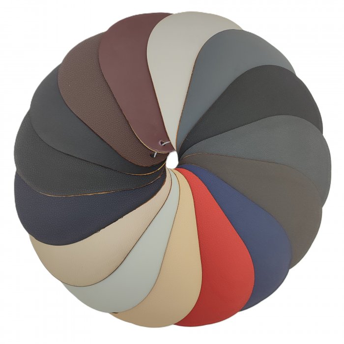 Leatherette backing foam and canvas.